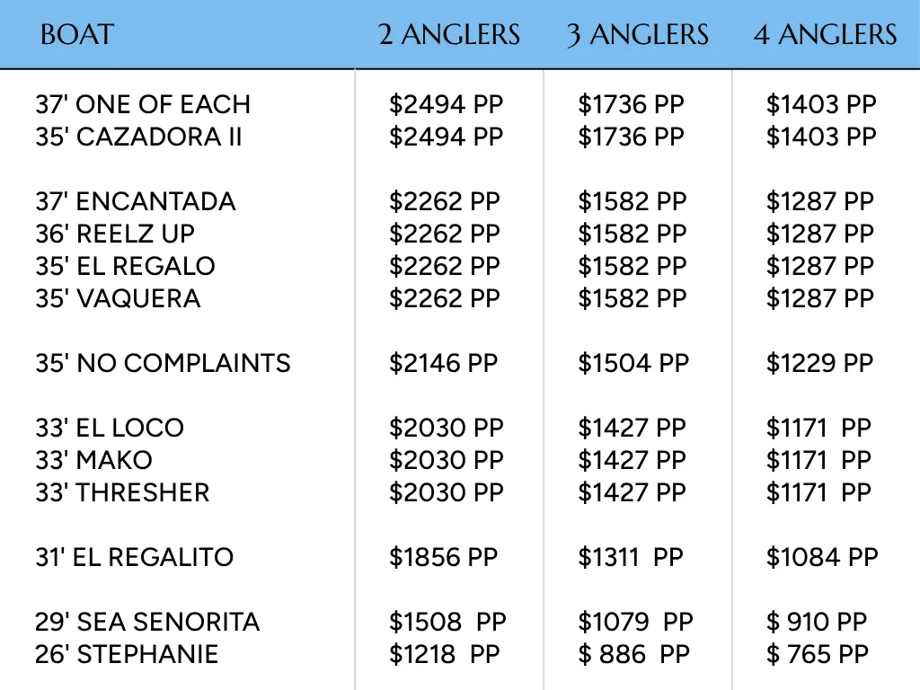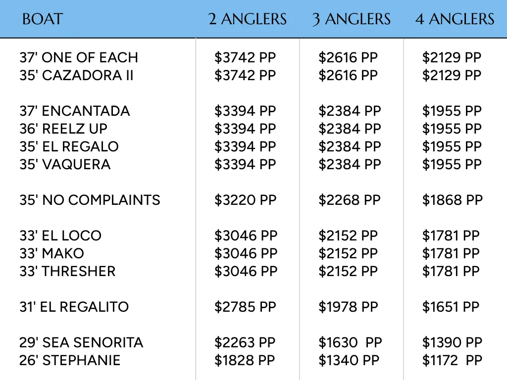 Rates for Fishing Packages include Fishing, Cabana Rooms, Airport Shuttle and All Taxes